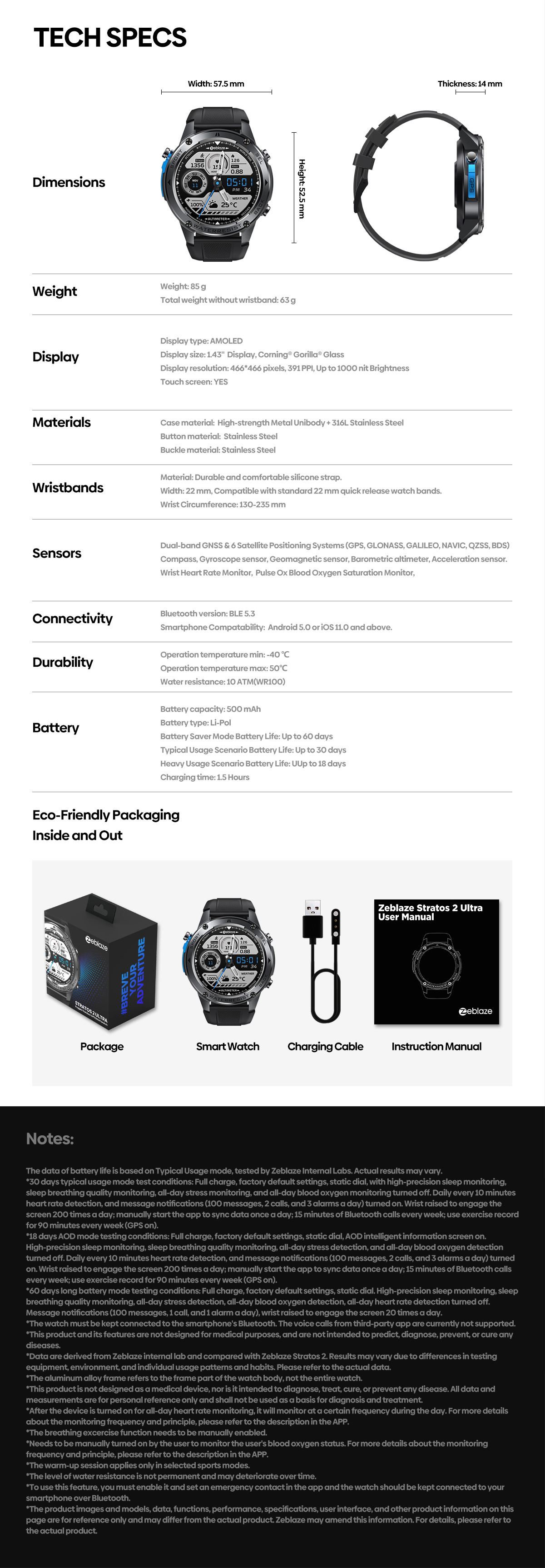 Package List: 1 x Stratos 2 Ultra,1 x charging cable, 1 x Box, 1 x User Manual